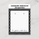 Chic jewelry business display cards. Handmade Jewelry by Name typography in black against white background. Black background with white polka dots. Crafted with love written in black script (keep or insert short tagline, or delete to leave area blank). Two Small Circles against white and black framed background. NOTE: Circles are not pre-cut, you will need to use a Small hole punch to make clean cut holes to then place your Earring Studs in. Backside has small red heart. Insert telephone number, email address, website, social media handle, as needed. Insert Your Business QR Code for customers to Shop 24/7, or delete as needed. Original Design by TamiraZDesigns.
