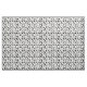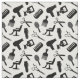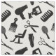 Tyg med ett svartvitt mönster av silhouettesna av olikt frisörverktyg, lik sax, hårkammar, hårtorkar, Etc.