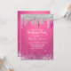 Chic Hot Pink Silver Dropp Glitter Monogram Inbjudningar