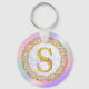 Chic Iridescent Initial With Gold Scrollwork Nyckelring