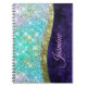 Gör skolstarten rolig med den här söta personliga anteckningsboken. Den är designad med elegant flickaktigt silver och iriserande falskt glitter i enhörning, regnbåge, teal, akva, lila och blå.