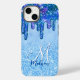 Chic isblått ombre glitter droppar monogram Iphone case. Vacker, modern och coola täckning för den trendviga och konsthundande höftledaren. Denna sofistikerade snyggt skulle vara underbar för flickor som har klassisk och sparsam design. Visa upp din personliga stil, se modern ut, trendig och känn snyggt med en unik design på ett mobilenhetstillbehör eller anpassa den till en annan produkt du vill ha. Lägg till ditt namn och monogrammet med en coola och modern kalligrafi. Det gör perfektens presentidé till en söt 16-årsdag, bröllop, möhippa, årsdagar, babyduschar eller möhippor, valentines day, jul eller som en gåva i allmänhet. OBSERVERA: Det här är platt tryckt grafik - ingen riktig glitter, juveler eller upphöjda delar