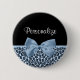 En dammig blå och svart taggig tryckknapp för chic och snyggt med ett ljusblått band som är bundet till en söt bugg. Anpassa det här trendigets djurtryck i namn bricka genom att lägga till namn i din tonåring flicka. Platt utskriven bild, inte verklig båge.