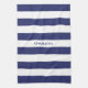 Chic Vita, marinblått rand, eget namn, monokerhandduk för köksduk