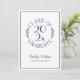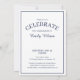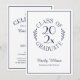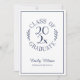 Skicka eleganta examensinbjudningar till din examenståttas firande med ett chic emblem i marinblå typografi på vit botten som lyder: CLASS OF [ÅR] GRADUATE med orden böjda runt året i mitten och med böjda botaniska blad längs varje sida av den cirkulära designen. Under emblemet står examenståttans namn i ett mörkblått skrivstilssnitt och deras skola i ett snyggt serif-snitt. En tunn marinblå rektangel skapar en ram nära kanten.