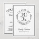 Skicka eleganta examensinbjudningar för din examenständs firande med ett chic typografisk emblem i svart och vitt som lyder: CLASS OF [ÅR] GRADUATE med orden böjda runt året i mitten med böjda botaniska blad längs varje sida av den cirkulära designen. Under emblemet står examenständens namn i en svart skrivstil och deras skola i en snygg serifstil. En tunn svart rektangel skapar en ram nära kanten.