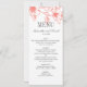 Elegant och romantisk stil magnolia bröllopsmiddags meny kort design i korall och tenn grå färgschema.