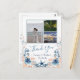Beach Wedding Tack Postcard. Med ett 3-foto-kollage, Seashell och Ro Photo Nautical Bröllop tackkort: Vårt Beach Wedding Tack Postcard är perfektens sätt att uttrycka sin tacksamhet mot dina nära och kära efter ditt oförglömliga hav firande. Det här eleganten har ett vackert 3-fotokollage som gör att du kan visa dina favoritstunder från den stora dagen. Oavsett om det är en bild av dig och din partner på stranden, en bild av dina löften eller ett öppet ögonblick som delas med familj och vänner, hjälper det här kortet dig att återuppleva magin i ditt badbröllop. Konstruktionen är accentuerad med känsliga segelceller och mjukt ro, som blandar nautiskt och romantiskt inslag för att skapa en serenestesisk, kustnära estetik. Vattenfärgen struktur i sjöslingorna framkallar havets skönhet, medan eleganten ro lägger till en liten bit romantik och charm och skapar detta tackkort både hjärtligt och bedövande. Perfekt för par som vill sin speciella dag genom bilder och tänkvärt ord, detta vykort för anpassade gör det möjligt för er att skapa en personlig och varaktig keepy för era gäster. Visa er uppskattning för deras kärlek och stöd med ett kort som fångar andan i ert badbröllop och er tacksamhet. Oavsett om du tackar gästerna för deras närvaro, gåvor eller delade minnen är det här nautiskt inspirerade Tacken Postcard ett vackert sätt att uttrycka din uppskattning.
