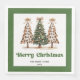 Modern Christmas dinner napkins featuring three minimalist watercolor Christmas trees in earthy green and gold with playful leopard pattern accents and hand-drawn lettering. A stylish choice for festive tables, these napkins are personalized with your custom name, adding a unique and elegant touch to your holiday dinner or Christmas party décor. 🎄✨