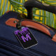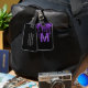 Resa i stil med den här anpassningsbarna glitter och märkrn med glasbagage. elegantens utformning har en gräns överst på den fina lilan som droppar glitter med gnistor. I mitten finns ditt första monogram i lila med ditt namn i ett modernt, handskrivet vitt skript på svart bakgrund. Baksidan av bagagetaggen har ditt namn och adress för att anpassa sig. Designad bara för dig av Extreme Tees!