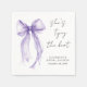Eleganta servetter till din bröllopsfest med en handmålad akvarell av en lila flirtig rosett, "Hon knyter knuten" i ett chic kalligrafiskrift, och brudens namn och duschdatum i modern enkel bokstav.
