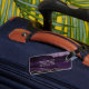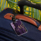 Lägg till en liten bit glitter och glam i ditt bagage med den här elegant personlig säckens märkre med en bakgrund av lila och guld glitter agate med ditt första monogram och namn för att anpassa sig till modern manuell manusgrafi. En unik gigantisk gåva till födelsedag, helgdagar och alla speciella tillfällen. Designad bara för dig av Extreme Tees!