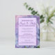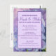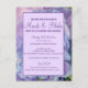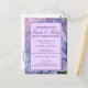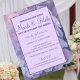 Det unika minsta vykortet för bröllopsinbjudan för lila innehåller en ramruta för din text som avgränsas av en lush hydrangea-blomma som kant från blues till lavender och rosa.Lettringen är i kontrasterande typsnitt av ett vanligt skript och varierande skuggor av lila box-bokstäver. Ersätt din egen information för en minnesvärd bröllopsinbjudan.