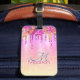 Chic lila orange ombre glitter drops mongram bagagemärke. Vacker, modern och coola för den trendomsavundna och konsthungande höftledaren. Denna sofistikerade snyggt skulle vara underbar för flickor som har klassisk och sparsam design. Visa upp din personliga stil, se modern ut, trendig och känn snyggt och resa med stil med en unik design på en resetagg eller anpassa den till en annan produkt du vill ha. Att anpassa det som en gåva till valentines day, jul eller som en gåva i allmänhet är en underbar gåva till alla kvinnor som kärlek har en modern glatt elegans. OBSERVERA: Det här är platt tryckt grafik - ingen riktig glitter, juveler eller upphöjda delar.