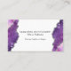 Gör ett slående första intryck med dessa lyxiga affärskort för lila och rosa som glider i glittrande åder i silver. Varje kort är inspirerat av naturliga geoder och stenar och har en vattenfärg-stil-agate gräns mot en skarp vit bakgrund. Perfekt för kreativets professioneller, skönhetsexperter, evenemangsplanerare och alla som kärlek lite elegans. Fullständigt anpassade med ditt namn, titel, kontaktuppgifter och till och med en tagg eller logotyp. Dessa kort kombinerar artister med professionalism.