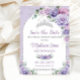 Anpassa denna snygga Quinceañera / Sweet 16 födelsedags kallelse "save the date" med dina detaljer enkelt och snabbt, tryck helt enkelt på knappen "anpassa" för att ytterligare ändra och formatera stil och placering av texten. Detta vackra kort har underbara akvarell-lila, syrenfärgade, lavendelblommor och silverfärgade accenter. All text är redigerbar! Perfekt för Quinceañera, Sweet 16, 18-årsdag, brud shower, trädgårdsfest, andra årets födelsedagsfirande, dop och mycket mer! Matchande produkter finns i butiken! (c) The Happy Cat Studio.