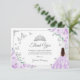 Lilac purple silver and white Quinceanera thank you card. Features brunette girl in ball gown dress, script font, silver butterflies, roses and tiara. Perfect for an elegant princess style glam celebration. Personalize with your own details.
