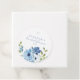 Denna runda bröllopsduschfavorit-taggen har mjuka blå akvarellblommor med elegant skript och seriffer typografi. Designad för att anpassa favoriter, godsaker och presentpåsar, lägger den till en sammanhängande finish till en blå blomsterbröllopsdusch. Anpassa med brudens namn och evenemangsdatum för att matcha dina festdetaljer. Koordinerar sömlöst med matchande inbjudningar, skyltar och duschpappersvaror.