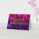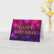 Kort för hälsning på chicens födelsedag med ord "Grattis på födelsedagen" i faux guld mot bakgrund av magenta vid ljus mönster. Om du vill lägga till text inuti kortet klickar du på knappen "Anpassa". *Observera att Zazzle Watermark som visas i zoomförhandsvisningen INTE visas på den färdiga tryckta produkten. © Rosewood and Citrus