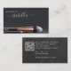 Ett modernt, minimalistiskt affärskort av konstnärer, med ett vitt skript, typografi på en svart grått och en svart bakgrund av konstnärer av chic, och en svart verktyg av yrket. QR-kod och social-media på en svart, träkolsdrabbad bakgrund på baksidan av kortet. En enkel chic stil.