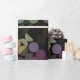 Vacker svart contemporary, mörk brun, beige taupe, orange, formblått, oliv grönt och lila färgad geometriska cirklar och halvcirklar mönster mot svart bakgrund. Elegant, snyggt och elektrisk minimalism för den konstnärliga höftledaren, vintagen reart stil eller abstrakt digitala geometriska motiv älskare. Finns på en rad moderna hantverk och kontorsprodukter. Märkre, påsar och skyddslådor, klistermärken, rosett band, papper och kuvert.