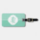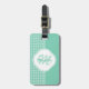 Chic Mint Grönt Houndstooth with Monogram and Namn Bagagebricka