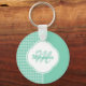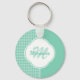 Chic Mint Grönt Houndstooth with Monogram and Namn Nyckelring