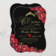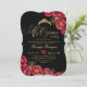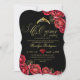 Modern snyggt Quinceanera svart röd och guld 15:e födelsedag med vackert damm från ro och guld på med guld bläck pour effekt (guld är en digital effekt, inte en riktig folie!) och modern kalligrafi. Klassy Quinceanera- och elegant-skript och chicens blommor skriver ut på födelsedagsinbjudan.