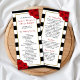 Den moderna lyxen bröllop-samlingen i chic har en klassisk svart och vit rand-bakgrund som accentueras med vackra ruby röd ros och en faux guld foil ram. Dessa programkort är lätta att anpassa och kommer att vara perfektens serviceordning för alla bröllop, möhippor, födelsedagsfester, förlovning firande eller andra särskilda tillfällen.