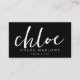 Ett modernt affärskort för glamorös typografi med ett vitt namn för penseldrag i chicen först namn och ett serif fullt och titel. Enkel modern elegans. Perfekt för skönhet, stil och mode fält.