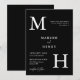 Chic Modern Monogram Initial Black White Wedding Inbjudningar