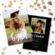 Det här meddelandet från studenten innehåller ett foto mellan fullt och ram och det moderna skriptet "Grad" i vitt på framsidan. På baksidan finns en annan foto och inbjudningstext för ett studenten firande.