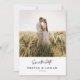 This modern yet elegant save the date card features a script greeting that says "Save the Date", one photo, and classic typography. There is plenty of space on the back of the card for all the important details.