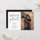 Wow! Vi lever i intressanta tider. Det perfekta meddelandet om uppskjutning för ett trendigt par med ett eget fotografi. Detta kort har "Kärlek är tålamod" i en kombination av kalligrafi och serif-typografi med en liten röd hjärtaaccent. På baksidan finns en svart bakgrund med det nya datumet och namnen i en chic minimalistisk serif-typografi. Klicka helt enkelt på "Personifiera denna mall" och lägg till dina egna detaljer!