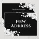 Chic Modern Svart Och Vitt Blommönster Ny Adress Flyttkort. Chic svart bakgrund, dekorerad med delikat och modern skiss stil vit blomsterarrangemang i det övre högra hörnet och nedre vänstra hörnet. Chic typsnittskombination av elegant kalligrafi och serif vit typografi.