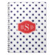 Chic monogram för blått- och vitpolka dotsmönster anteckningsbok med spiral