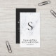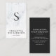 Ett affärskort av klass- och professionell-lodrät, med en subtil grått- och vit marmoreffektbakgrund täckt med ett monogram/initialt svart-grått, och tomt utrymme i grund-fjärdedelen av kortet ge namn och serviceuppgifter i svart-grått. Baksidan har en solid svart-grått-bakgrund, med affärs- och kontaktuppgifter i vitt modernt teckensnitt. Den här designen är underbar för evenemangsplanerare och annan professionell.