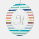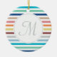 Chic Monogram Pastel Rainbow Vågrät Rand Julgransprydnad Keramik