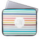 Chic Monogram Pastel Rainbow Vågrät Rand Laptop Sleeve