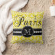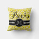 Denna svart, damastast mönsterdekorativ kudde för vit och för ljus gul chic vintage med personlig din monogram som är initial, ord "Paris" med det Eiffel torn och en fodra av utskrivavna vitdiamanter på det svart musikbandet ska lookfantastisk i ditt sovrum eller vardagsrum som en brytning, kudder. Monogramgallerit Gifts© Elke Clarke planlägger ©