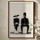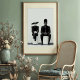 Gå in i en värld av tidlös sofistikering med den här snygga svarta och vita teckningen. Med en mystisk och oklanderligt klädd mode duo utstrålar biet en luft av enigmatisk elegans. Kvinnan, försedd med en dramatisk storskalig hatt och överdimensionerade solglasögon, uppmärksammas med sitt skräddarsydda svarta kostym och kränkta beteende. Förutom henne, en man i en unik hög, strukturerad hatt och lika stor snyggt skuggar spegel hennes chic närvaro, så accentuerade hans skräddarsydda svarta kostym med distinkta vita knappar. Sammansättningen är placerad på klassiska vita pedestals mot en pristinkande ljusbakgrund, med en subtil texturerad förgrund av gräs, en mästerlig undersökning av minimalism och hög kontrast. Den här bildutskriften är perfekt för att lägga till en liten bit contemporary chic och ett fet mode påstående i vilket rum som helst, rum, kontor eller gallerivägg. Ett idealiskt val för konstentusiaster, konnoissörer från mode och dem som uppskattar modern, sofistikerad estetik.