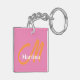 Chic Namn Initial Rosa Monogram Keychain. Fin monogramdesign i rosa och orange med ett skript och en enkel typografikombination som ge den här nyckelkedjan har en unik beröring. Designad för snyggten och chicen gör kvinnor en underbar tänkbar gåva till henne. Ursprunglig design av Ana Garza/Kardz Studio. Om du har några frågor, kontakta mig gärna genom Zazzle- Chattan.