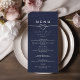 Vår blå bröllop-meny i flottan visar enkelhet och elegans med en minimalistisk utformning. Chicens utseende förbättras av ett romantiskt silver-rep-hjärta och ett modernt kalligrafiskript, skapar det vara ett sofistikerat val för din speciella dag.