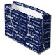 Modern navy blue name collage birthday gift bag decorated in nine different fonts customized with your name. Chic custom present bag with cool typography in cursive text.