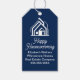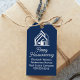 This professional realtor gift tag is custom made with your real estate company name under the modern white cursive script and house image. These chic navy blue realty business housewarming tags feature a house logo image for home builder or realty agent company marketing.