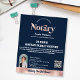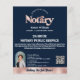 En modern, mobil notarius flyghandlare med snyggt för chic med kalligrafi-skript, typografi och luddpenna med marin bakgrund. Perfekt för notarie, professioneller, advokater, lån agent, agent... lägg till ditt foto