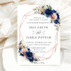 Chic Navy Ro Guld Blommigt Bröllop Geometric Inbjudningar
