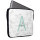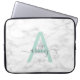 Chic Neo Mint White Marble Script Namn Monogram Laptop Fodral