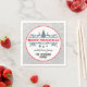 Chic och festiv helgdag-napkin med silver glitter-gnistor gräns och vit bakgrund. Ord "God jul" är skrivet i ett fet rött skript. Napkin dekoreras med en snabb utformning av finare grått med Julgran, två renar och balar. Grund på klistermärket är ord "med kärlek från" i grått, och familjens namn efternamn i svart.