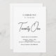 Den här chicen och den moderna födelsedagsinbjudan har en elegant vit bakgrund med svart snyggt. Blandningen av fet serif och handskrivet manus typsnitt belyser fiendets ålder på ett klassligt sätt som fångar öga. Perfekt för sofistikerade födelsedagsfester eller firande med milstolpe. Den här designen är elegant och enkel, samtidigt som den inte ser tidlöst ut.